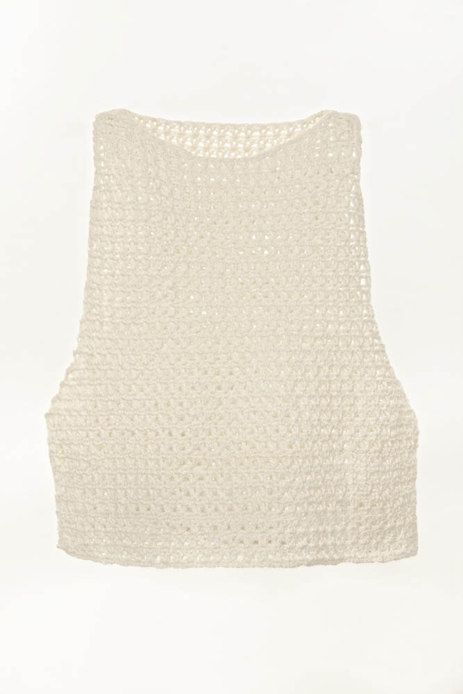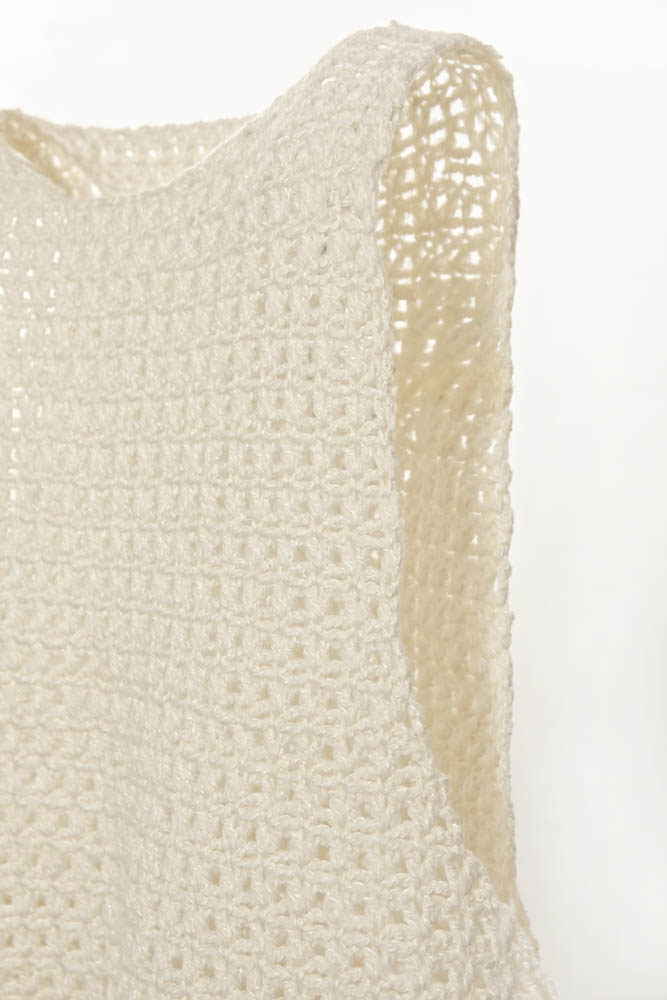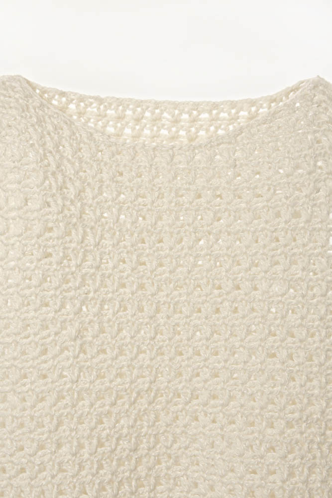 Crochet hand-knitted Top ribbed hem, 35% Merino wool / 35% Hemp / 30% Bamboo