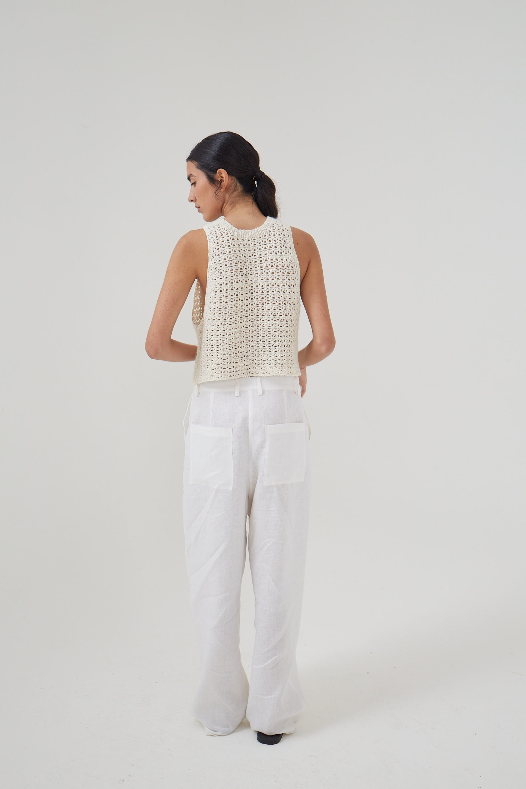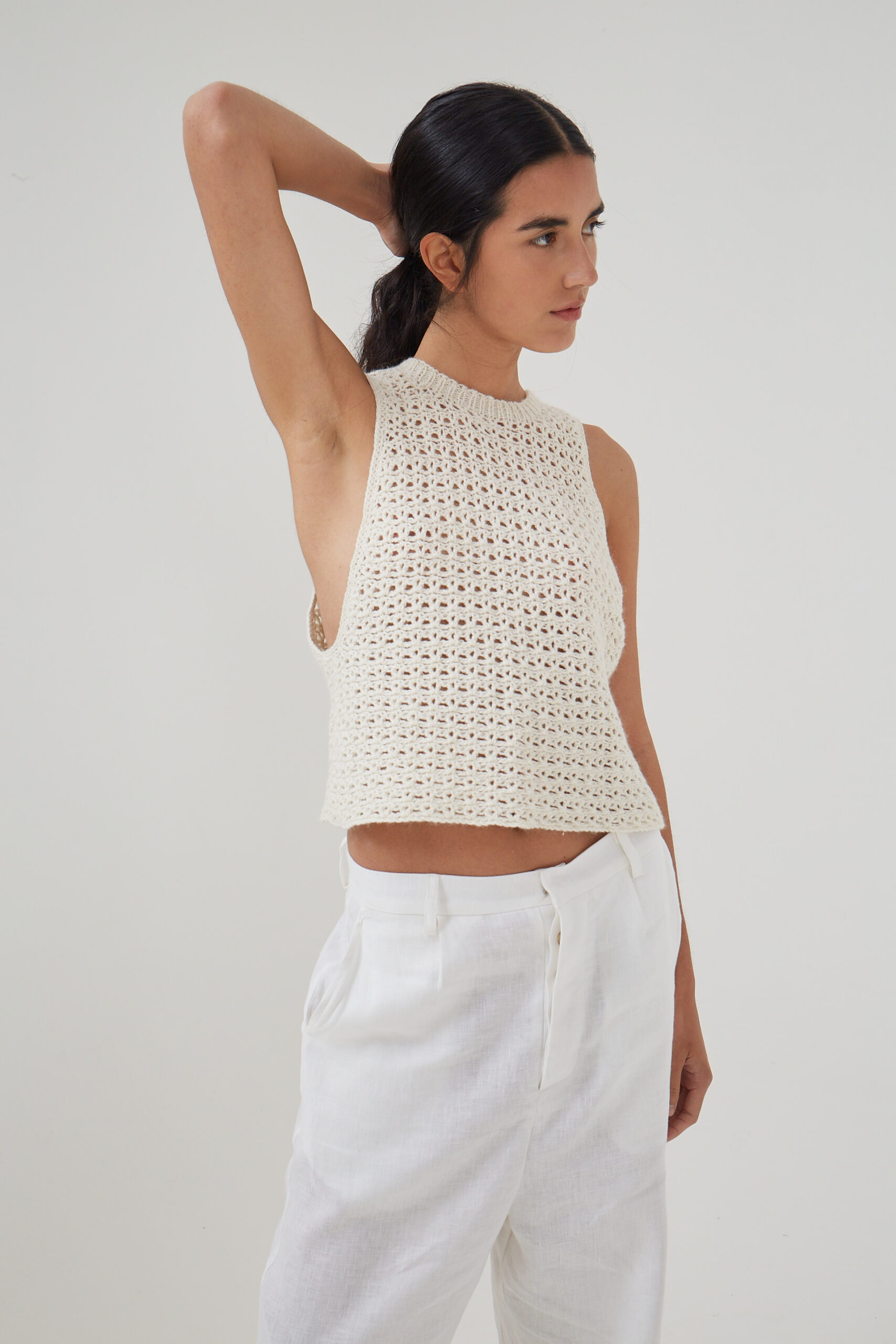 Top tejido a mano con dobladillo acanalado, 35% Lana Merino / 35% Cañamo / 30% Bambu