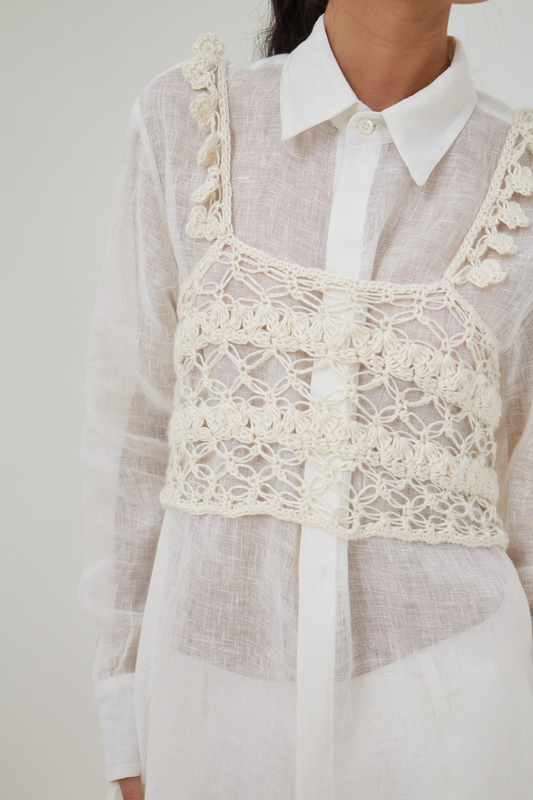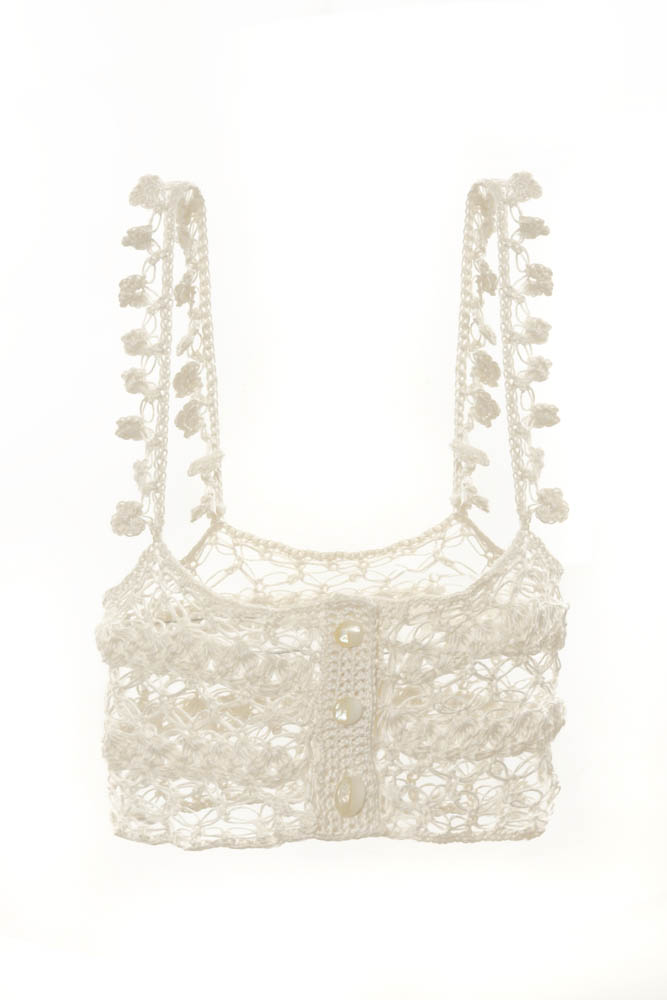 Top corto tejido a mano con flores y botones en la espalda / 100% Bambu
