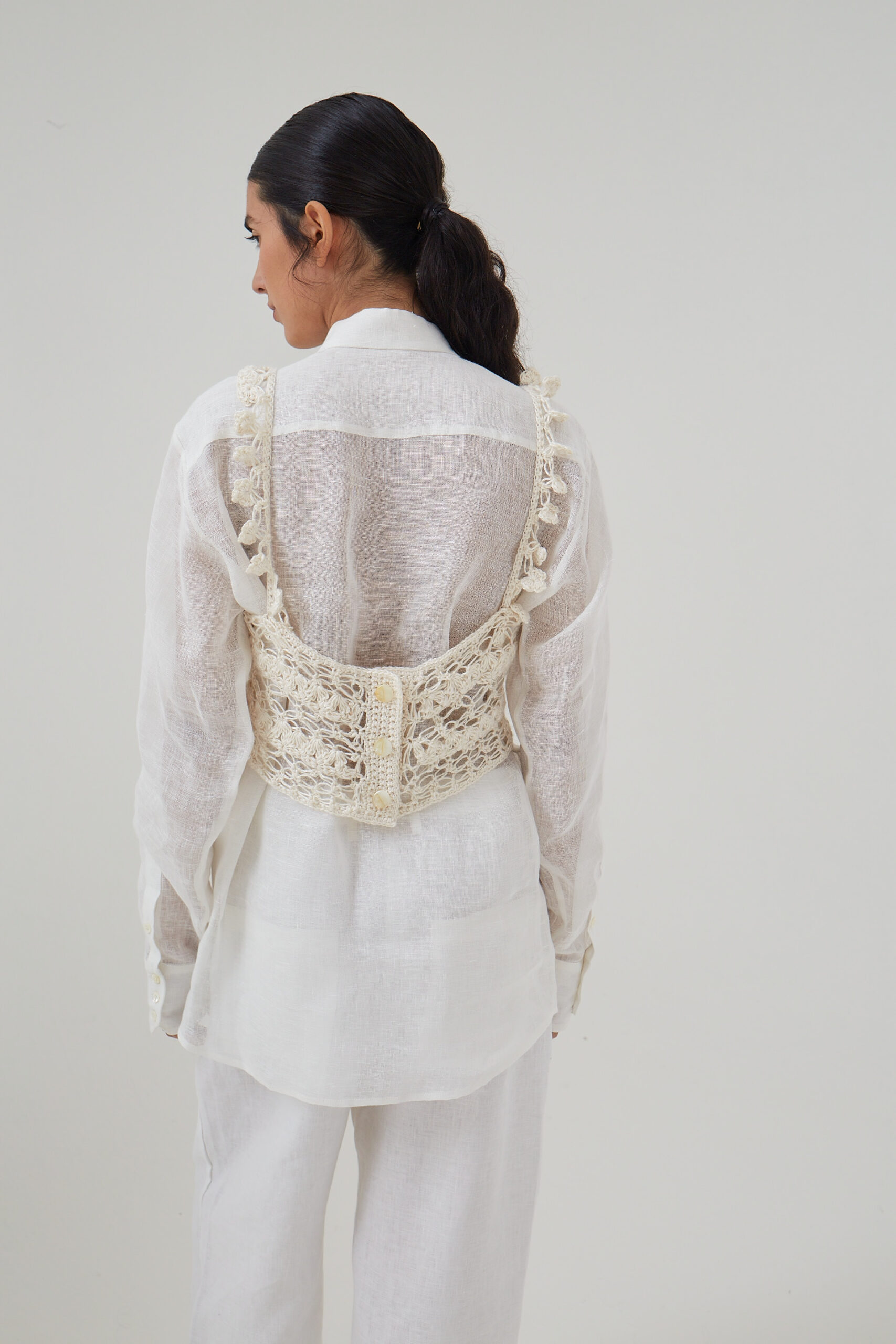 Crochet hand-knitted flowers cropped Top w/buttons on the back / 100% Bamboo