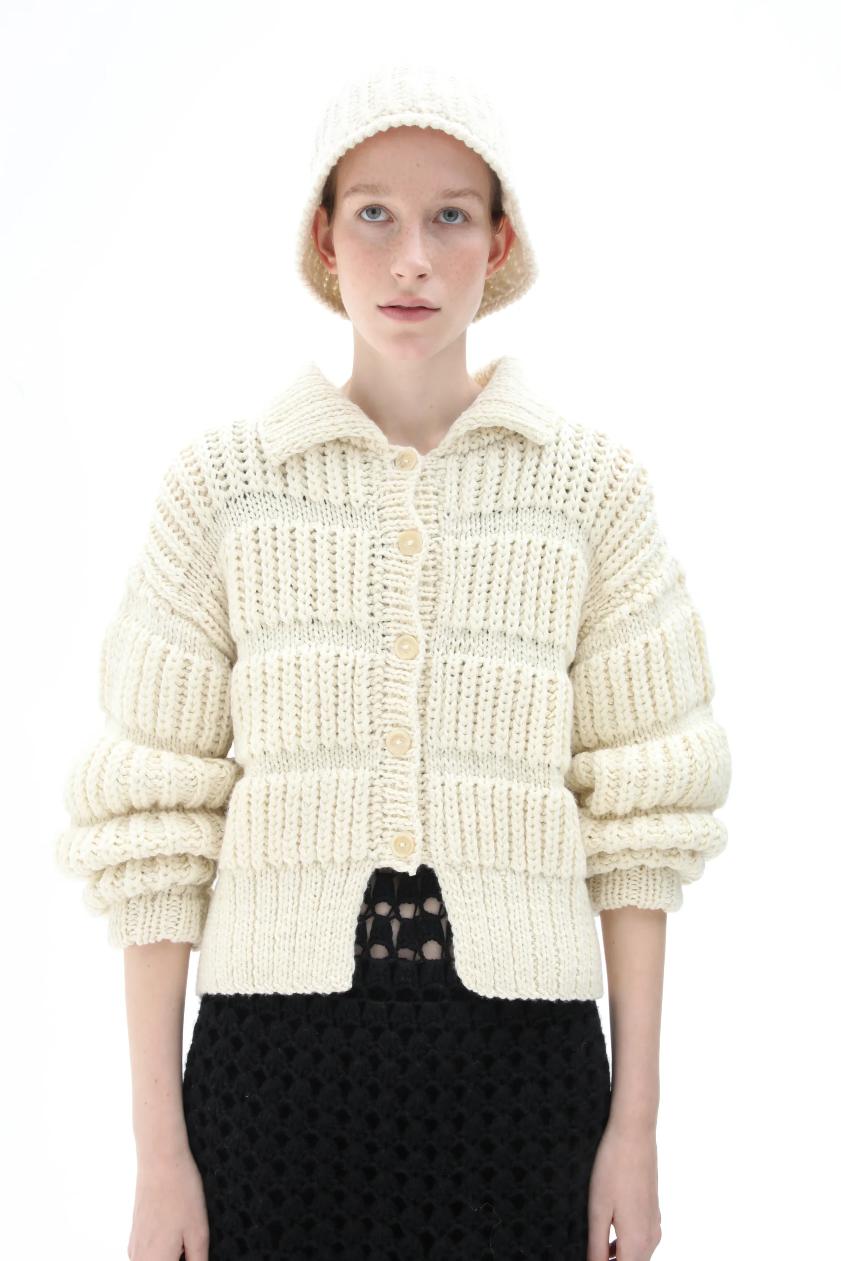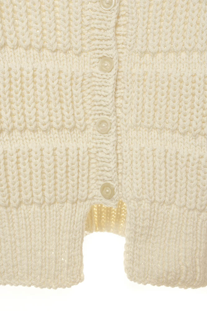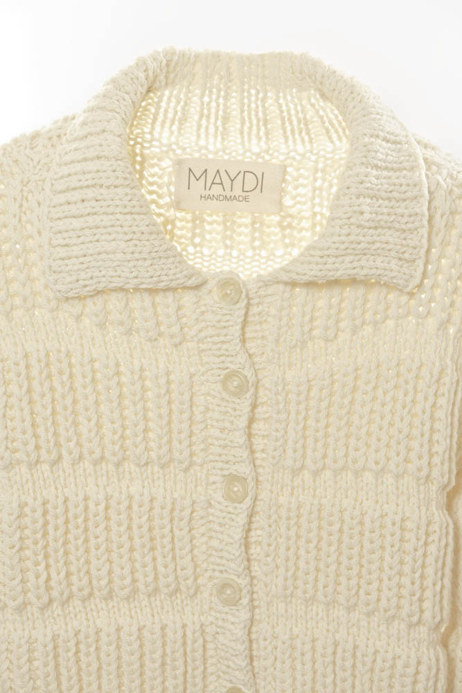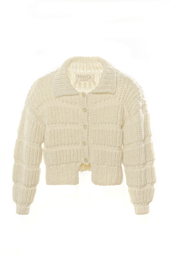 The Alma Cardigan with buttons fisherman’s rib stitch is hand-knitted from super-soft Merino wool 18 microns from Patagonia.