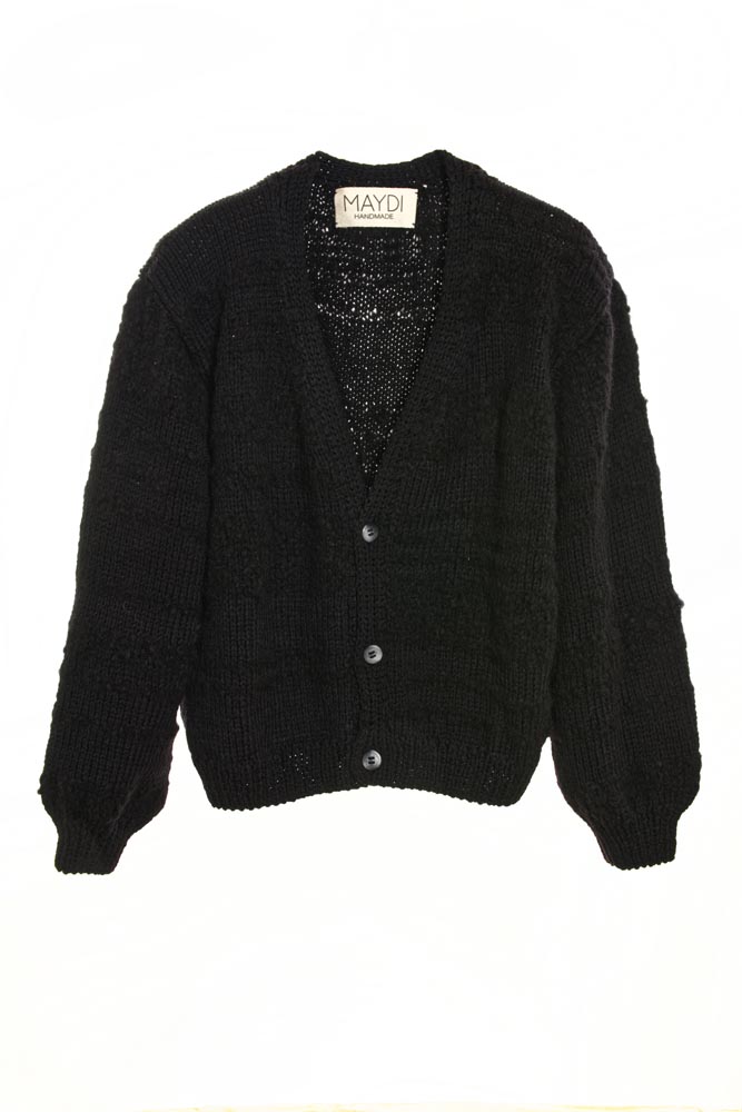 The Aroma oversized Cardigan jersey stitch in textured merino and chunky mohair horn button closure.