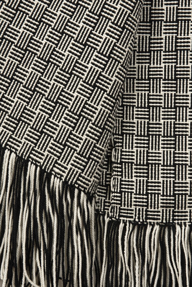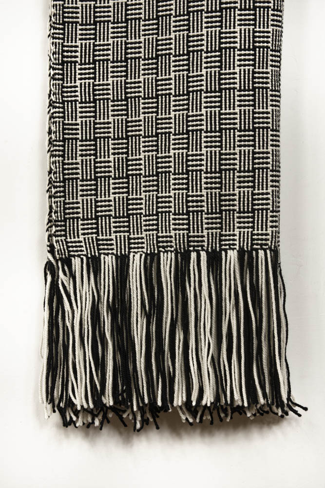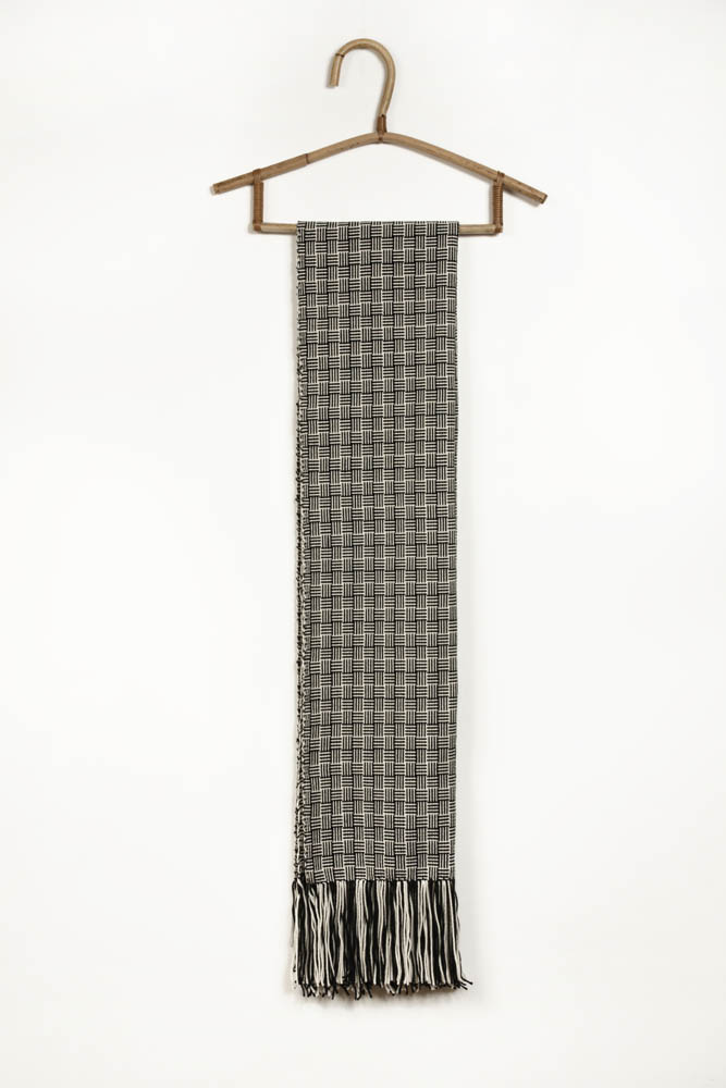 The Barracan delicately scarf hand-woven from 100% Merino wool 18 microns from Patagonia by a single artisan combining natural and black tones to create a subtle variation of contrasting shades.