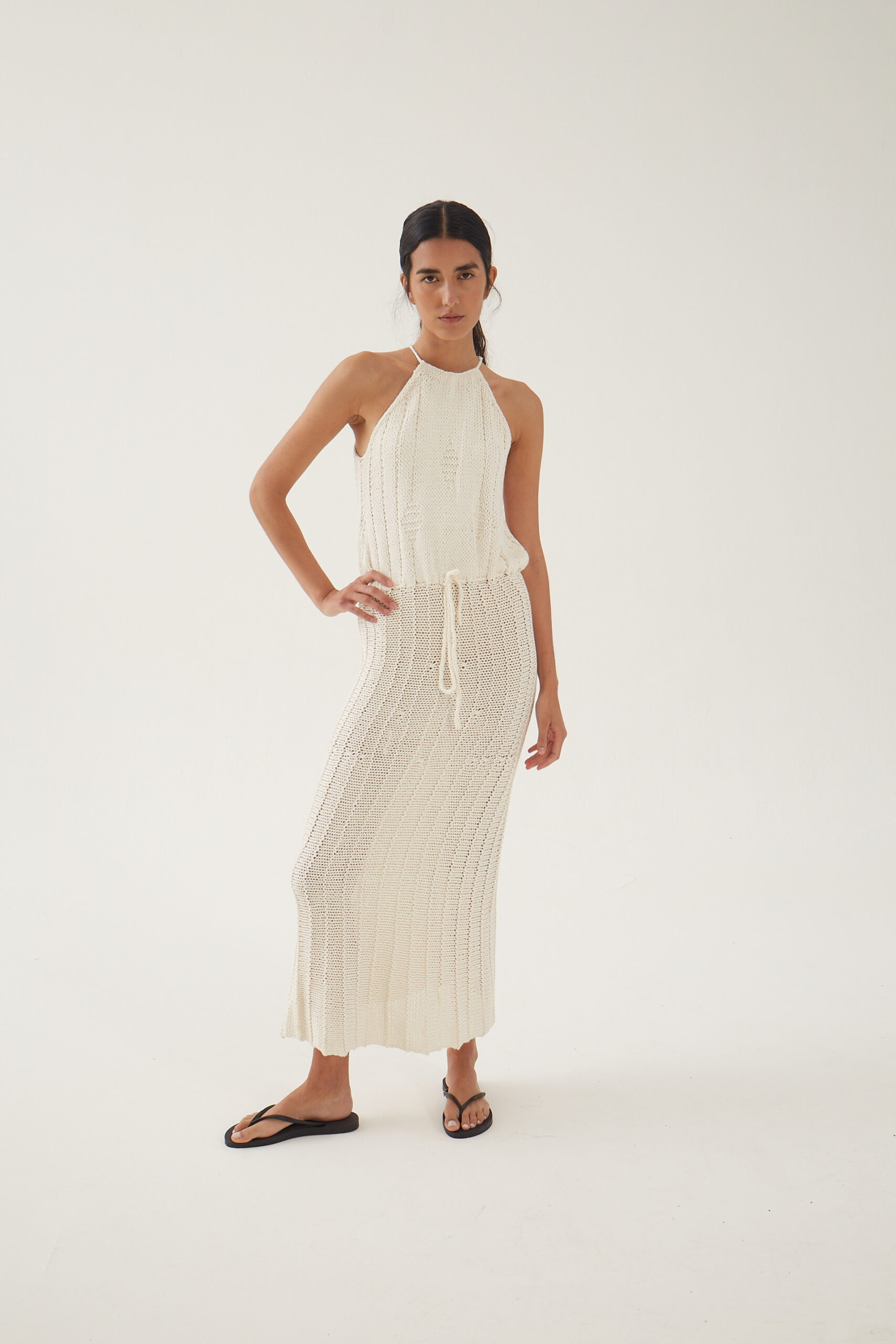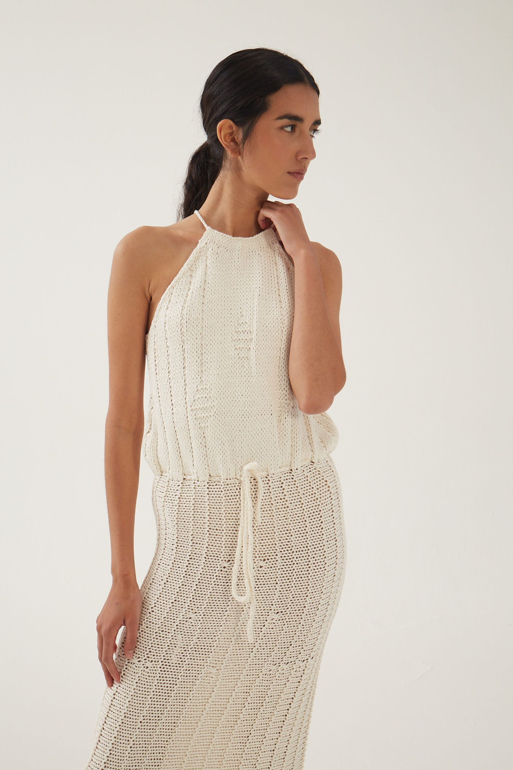 Vestido largo tejido a mano con diseño acampanado / 100% Algodón peinado
