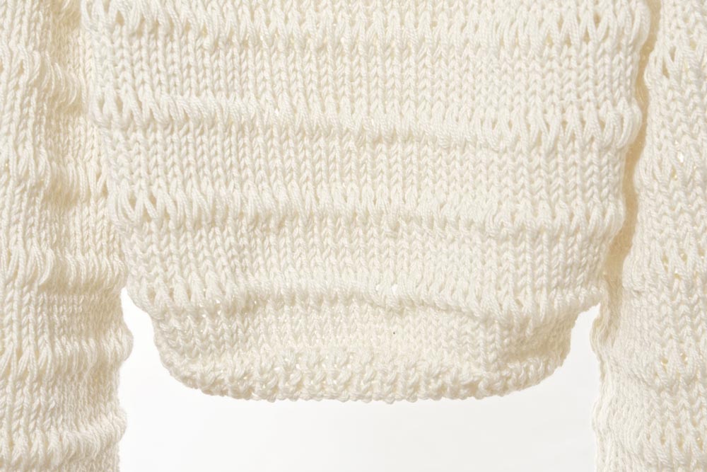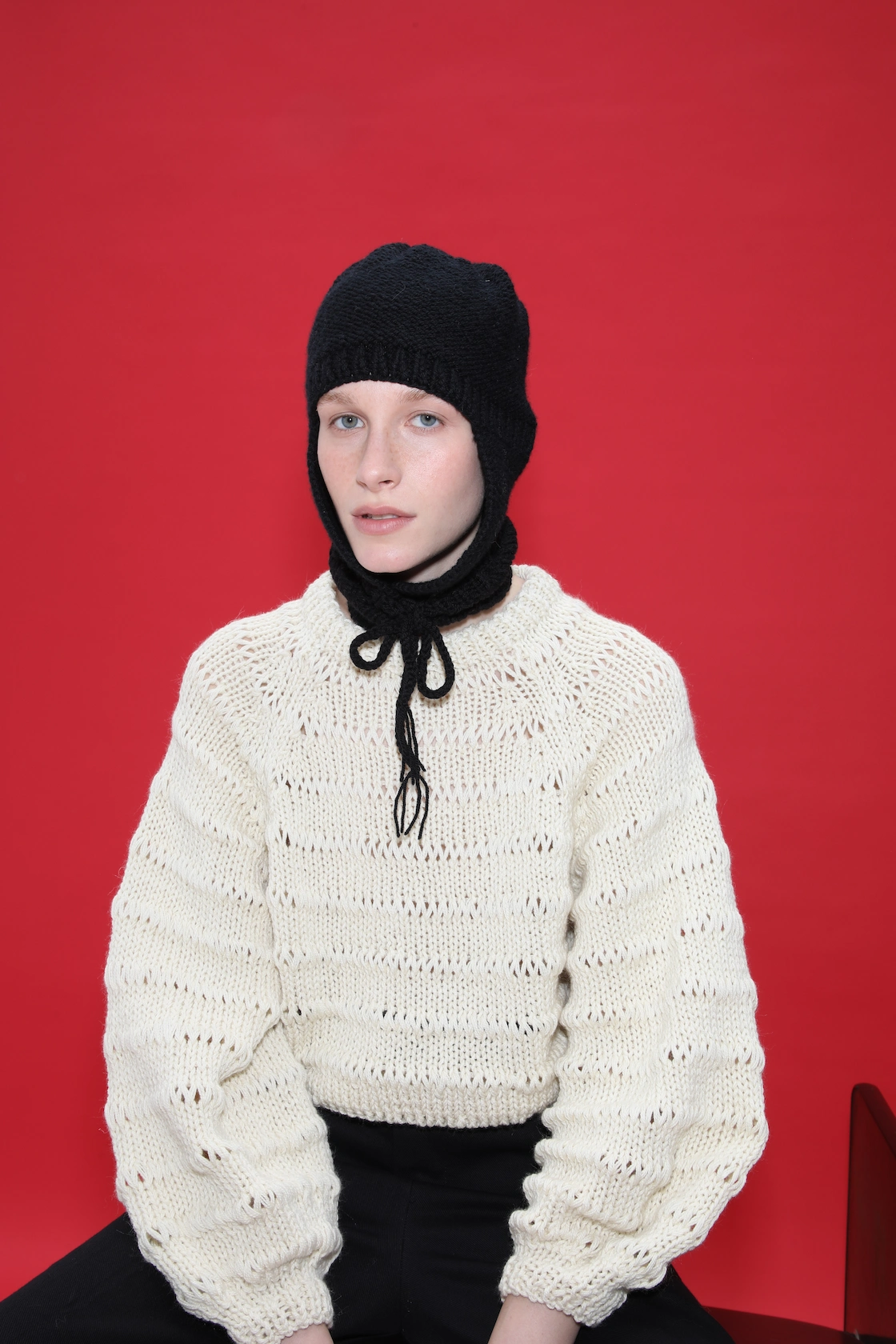 Cascadas Sweater con mangas abullonadas, cuello y puño punto acanalado confeccionado con lana mohair de una pequeña cooperativa de la Patagonia.