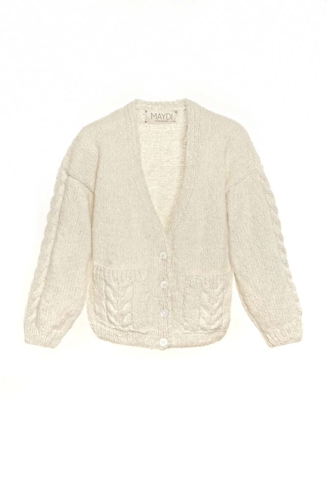 This Chapelco cardigan puffed sleeve and loose fit is hand-knitted by mohair and merino blend.