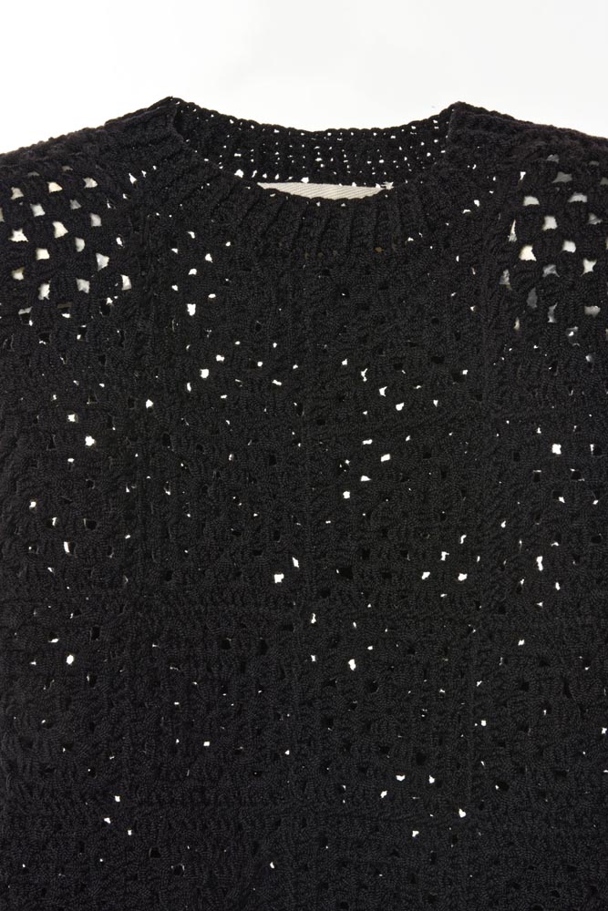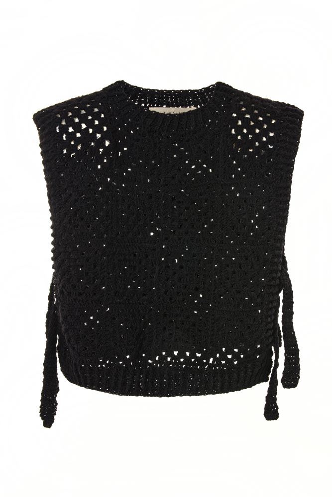 Cordillera Chaleco en punto granny crochet con lazo hecho de una fina lana Merino de 17 micras de la Patagonia.