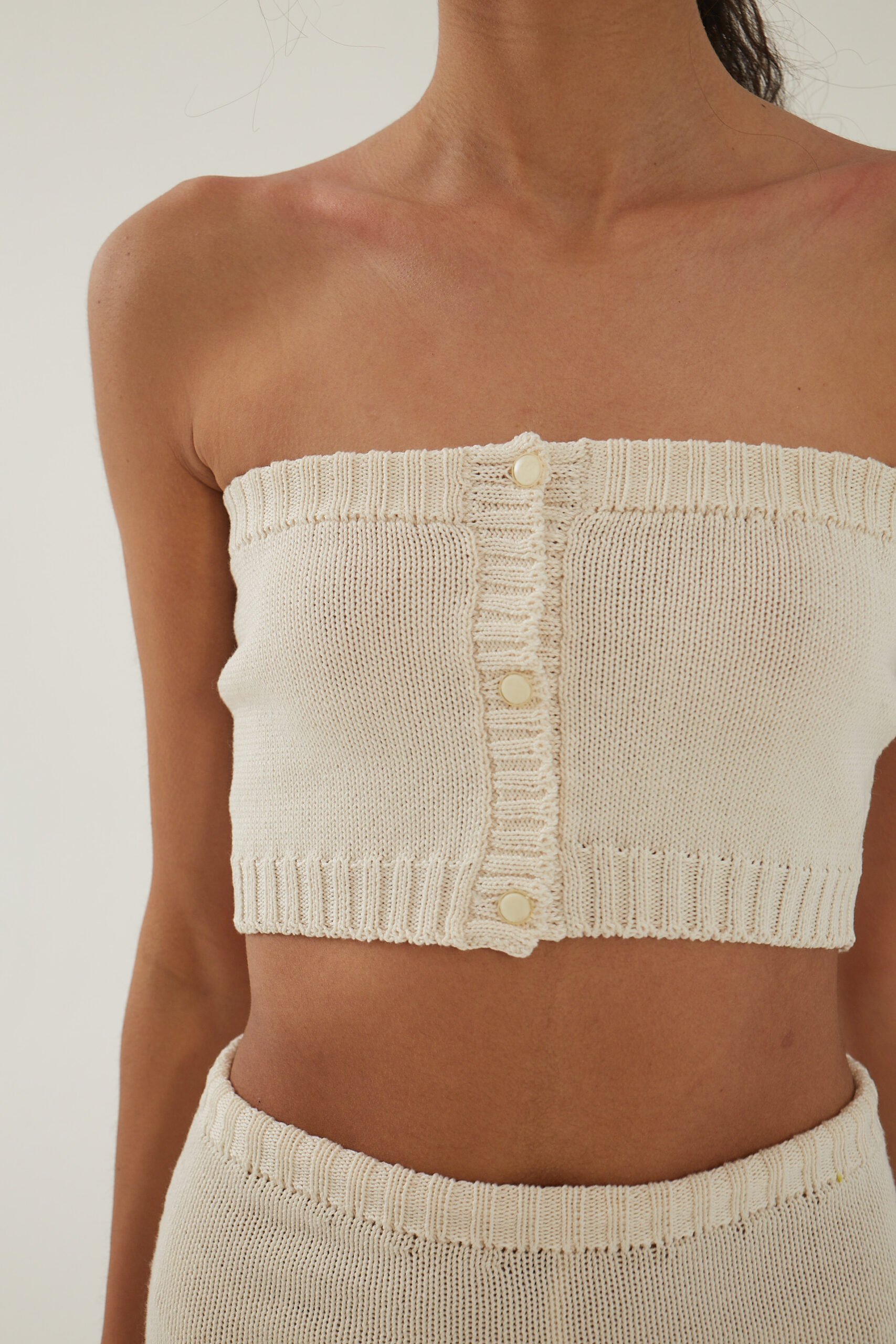 Hand-knitted jersey knit cropped Bustier w/buttons / 100% Peruvian cotton