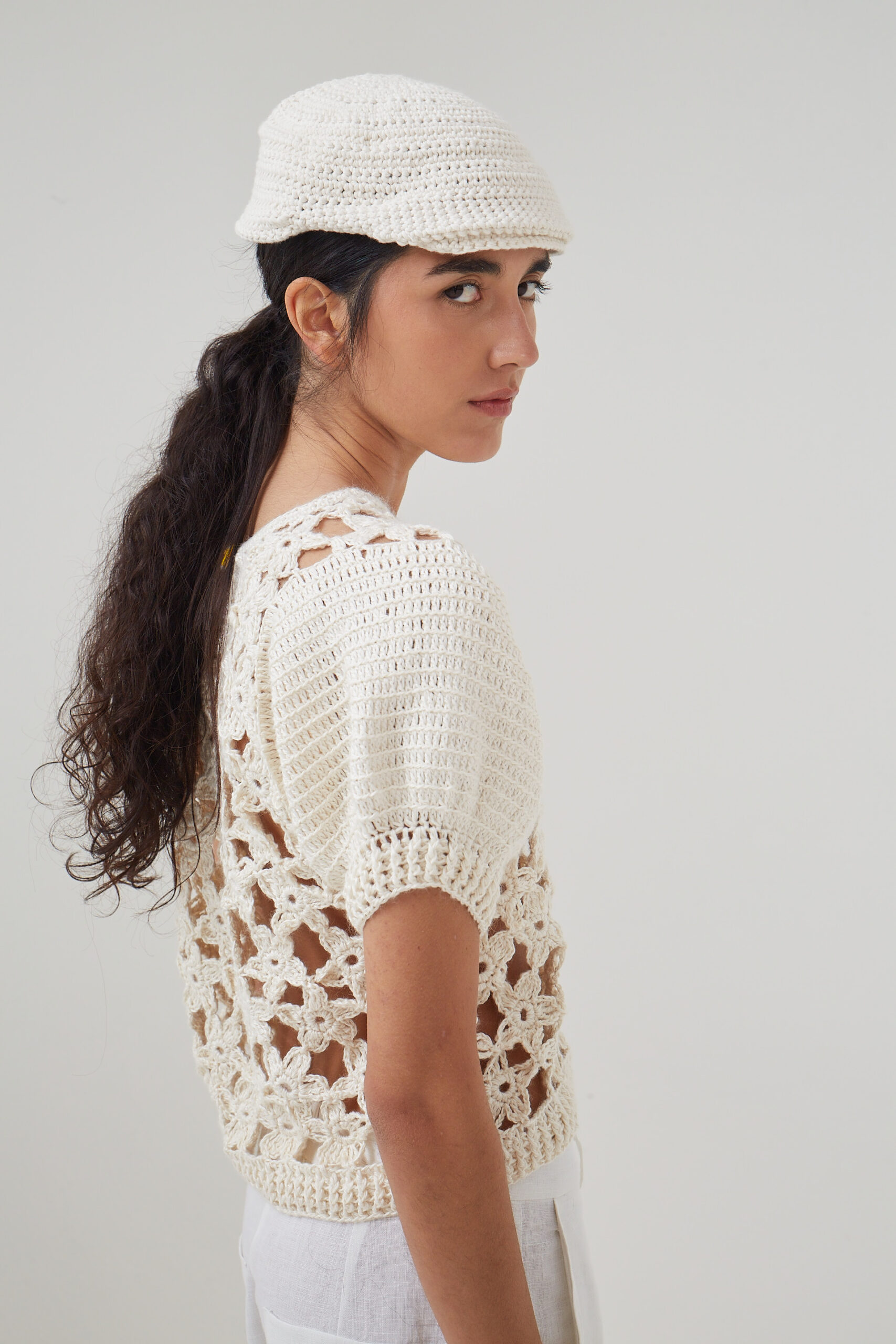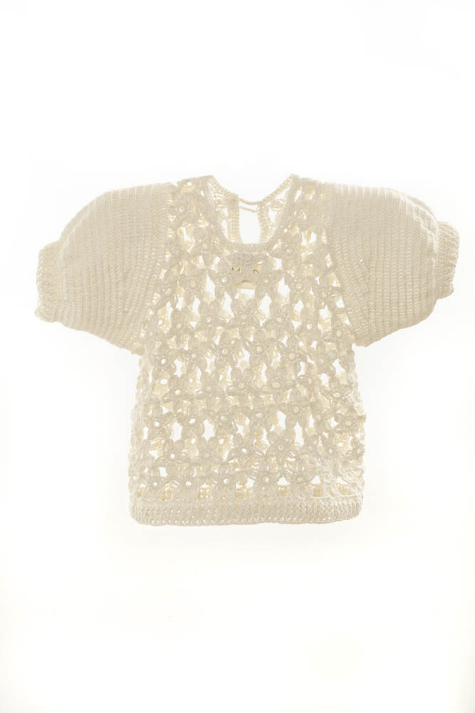 Top tejido a mano con flores y mangas abullonadas / 100% Bambu
