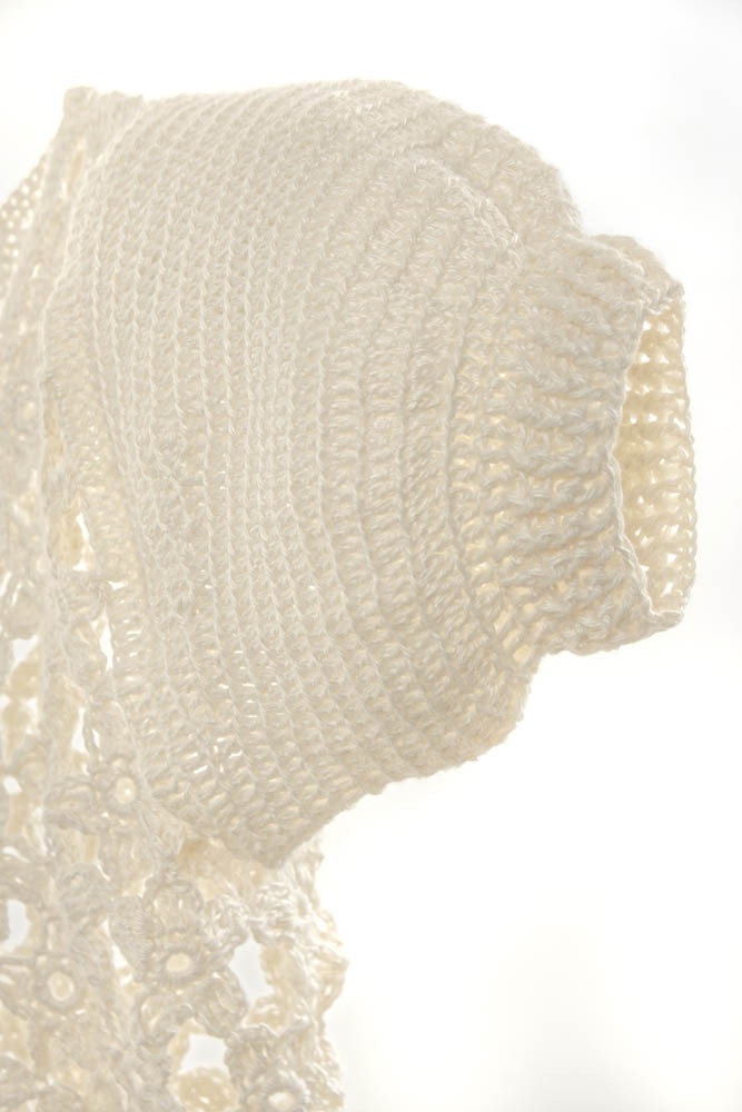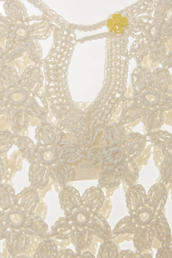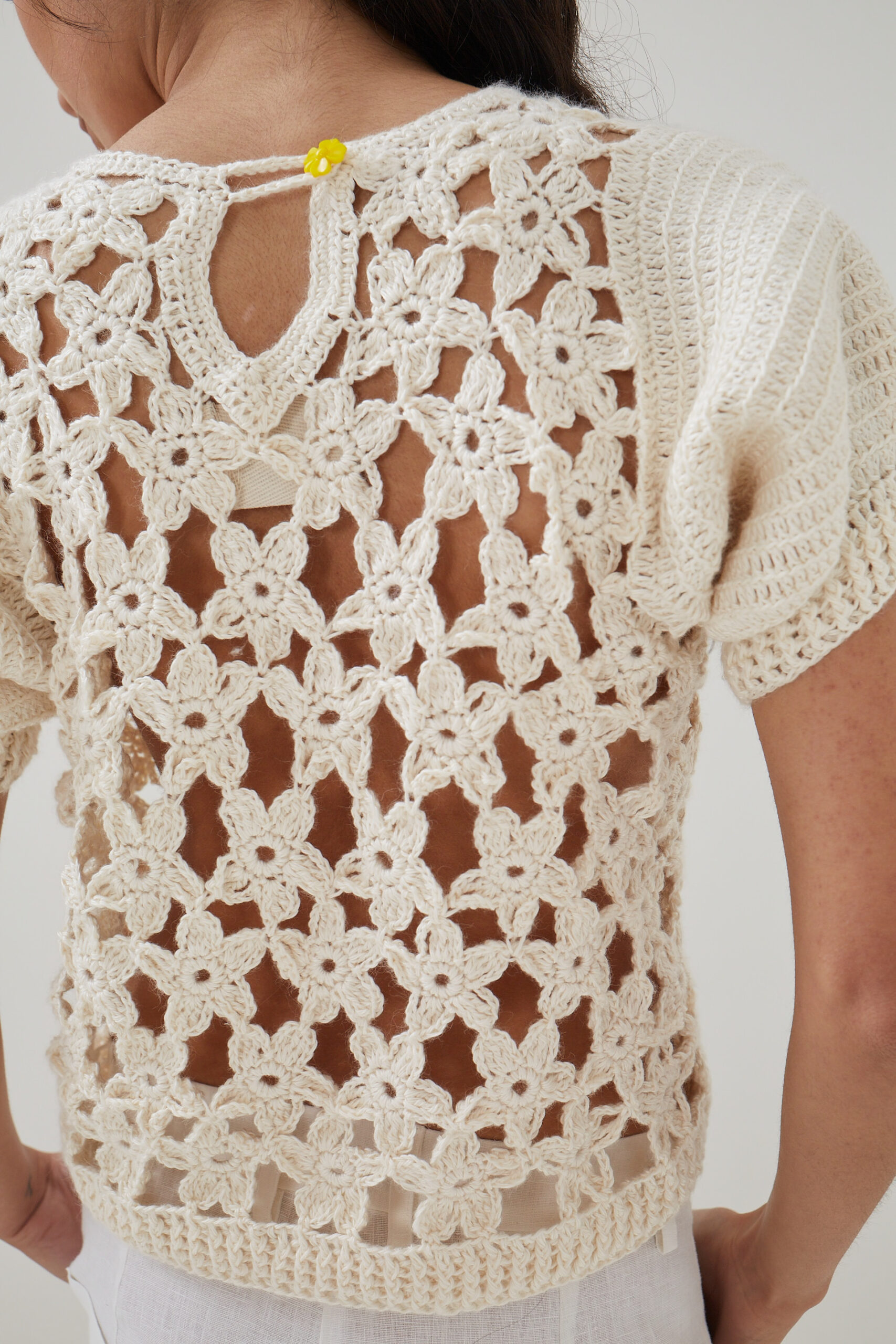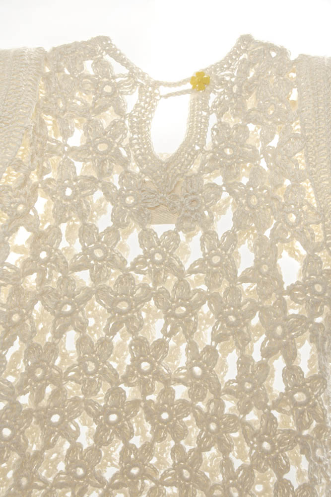 Crochet hand-knitted flowers puffed sleeves Top / 100% Bamboo