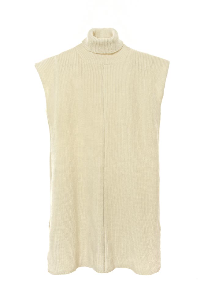Sleeveless Ribbed hand-knitted turtleneck Poncho /