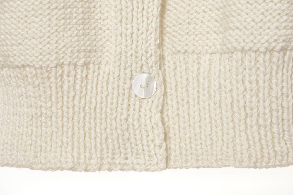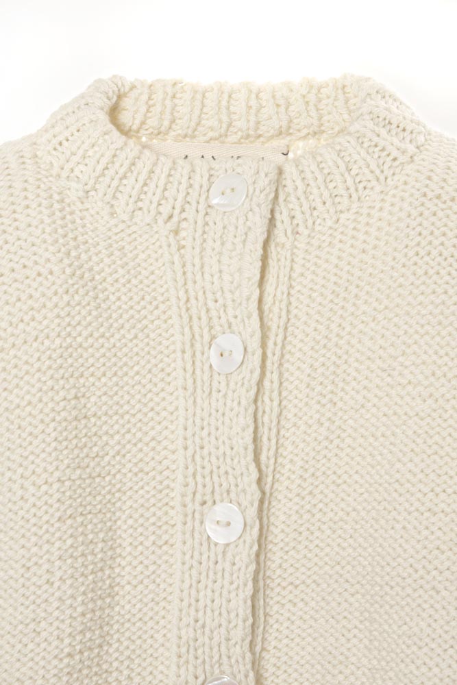 This Lai crew-neck cardigan – garter stitch, button closure, ribbed neckline cuffs and hem is hand-knitted by super-soft Merino wool 18 microns from Patagonia.