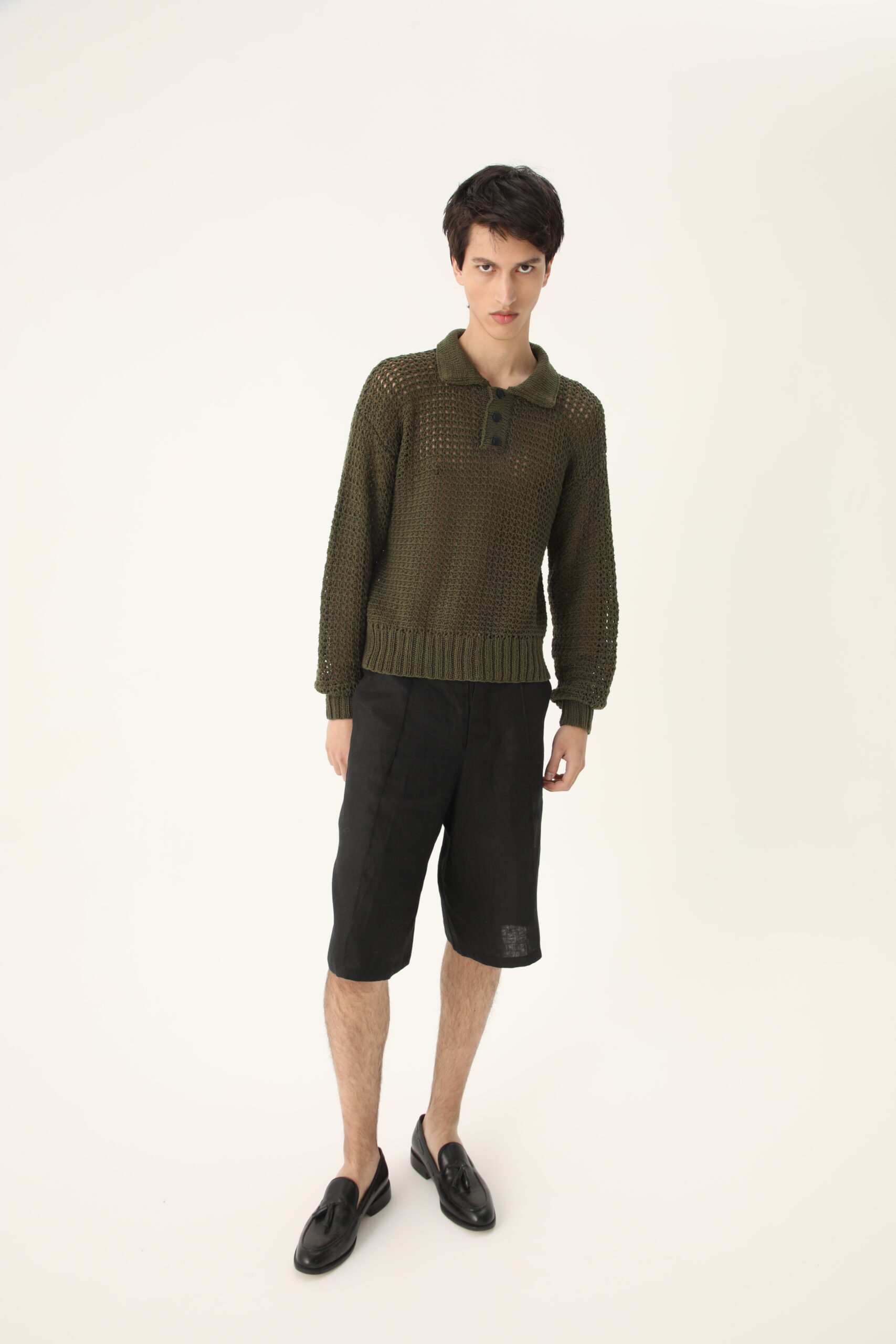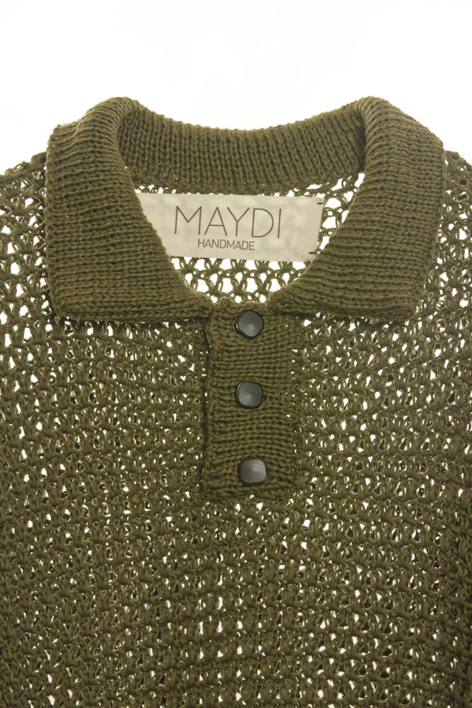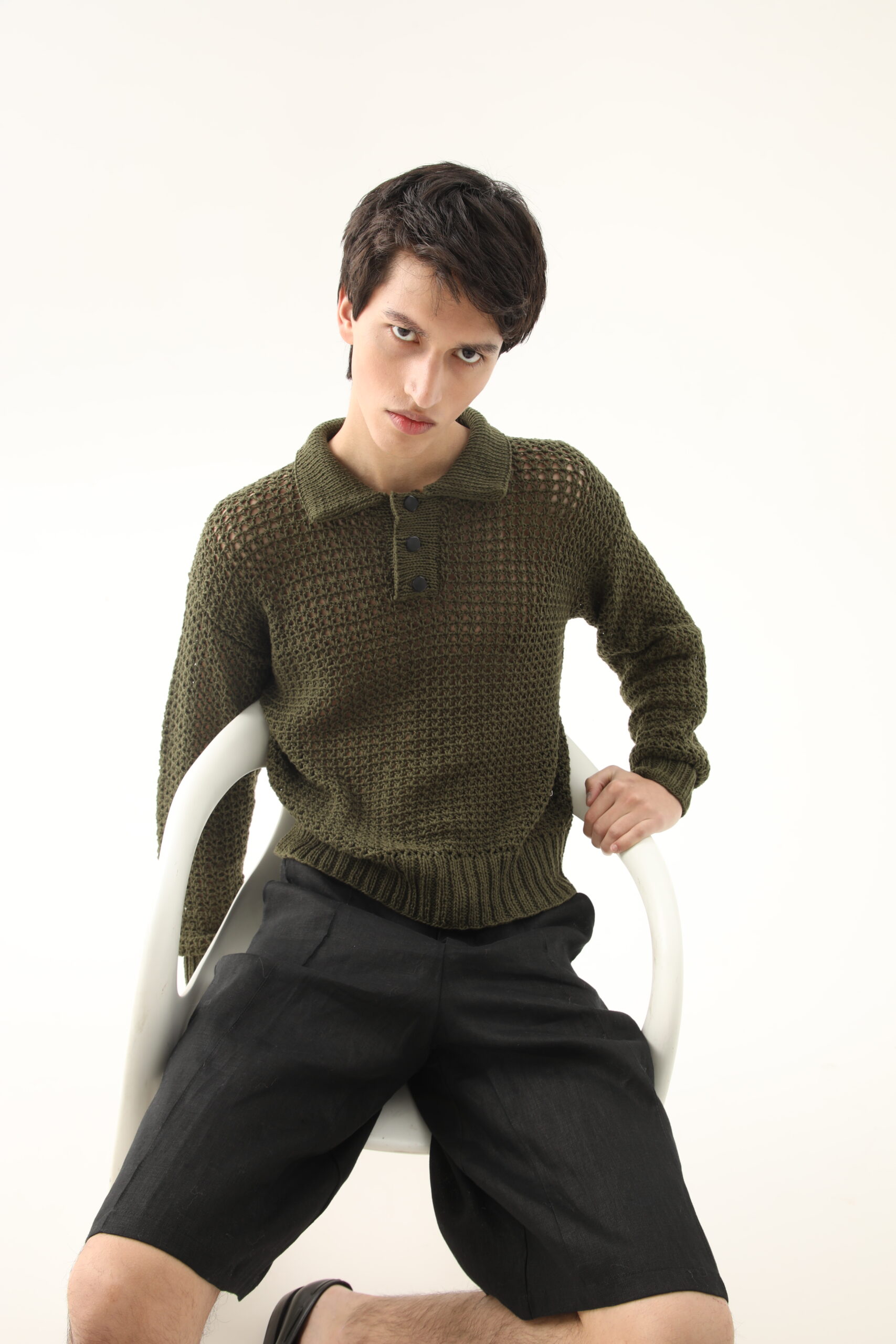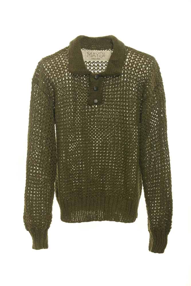 Modified daisy stitch polo neck hand-knitted long sleeves Sweater