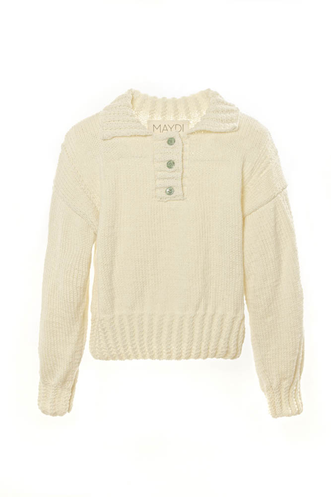 This Lirio polo knit long sleeves is hand-knitted from super-soft Merino wool 18 microns from Patagonia.