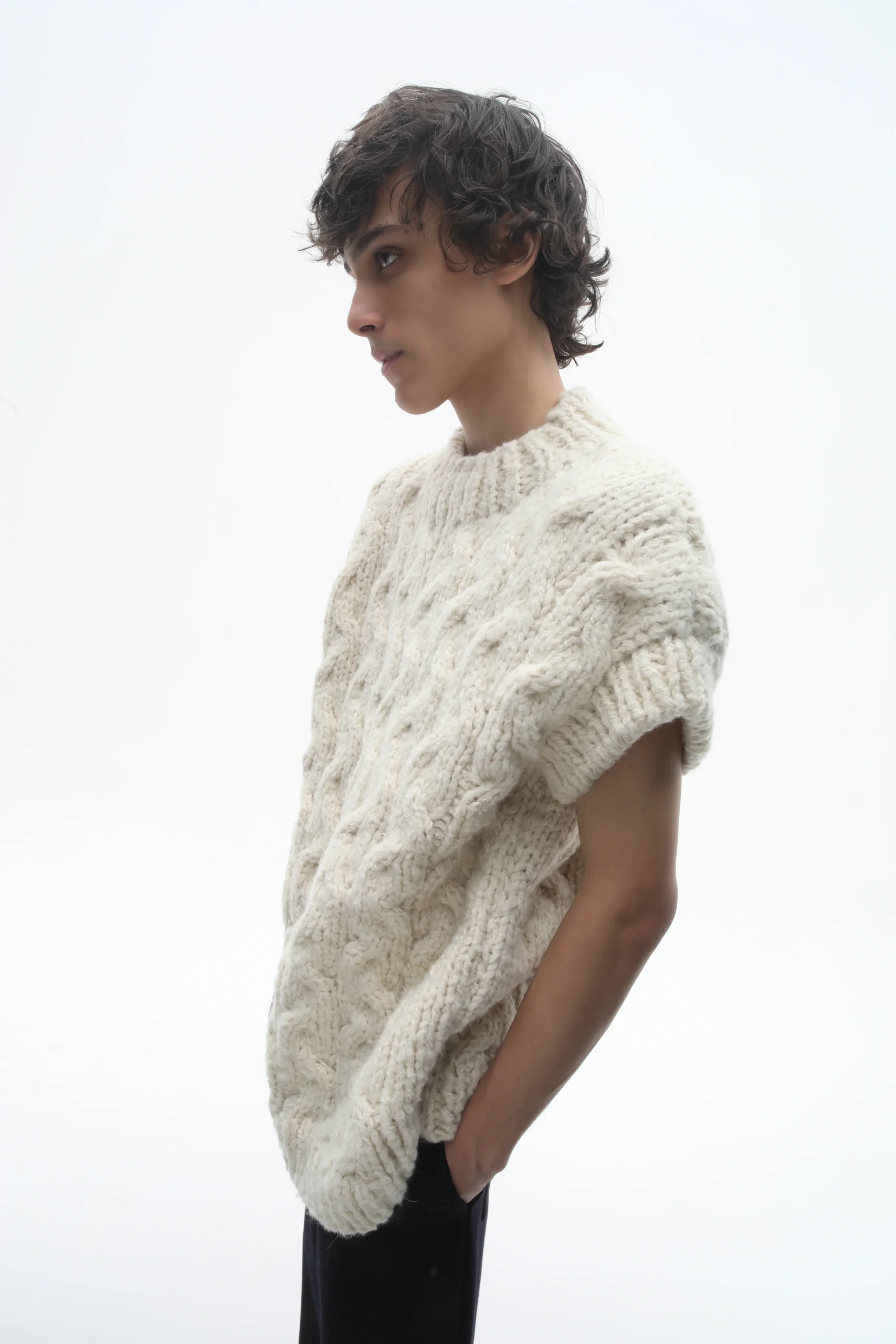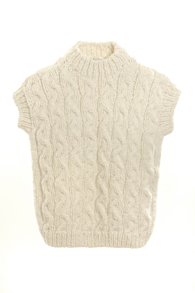 The Liuco Vest oversized fit cable knit knit in llama wool and boucle mohair wool.