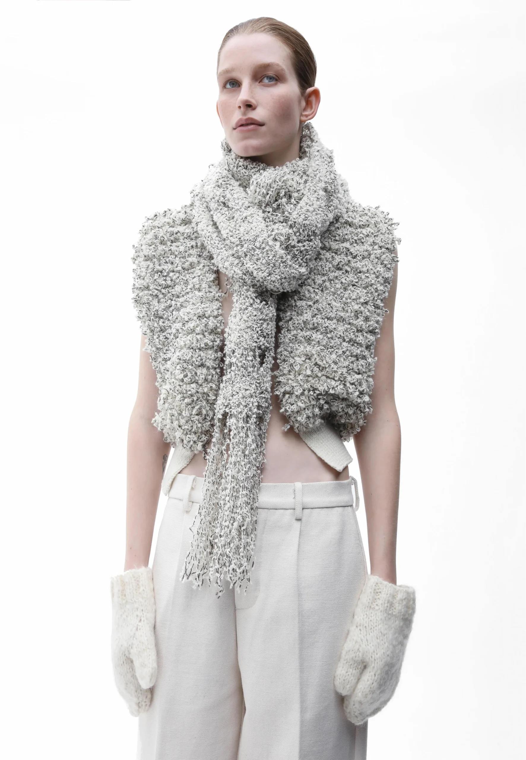 Los guantes Maya están tejidos a mano en una suave mezcla de mohair y merino bouclé.