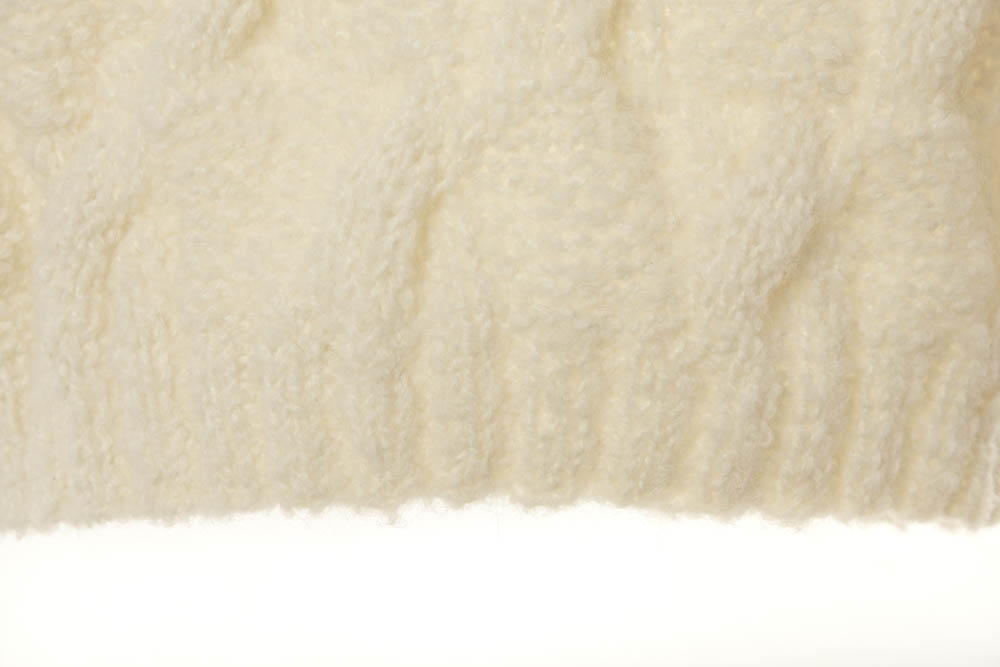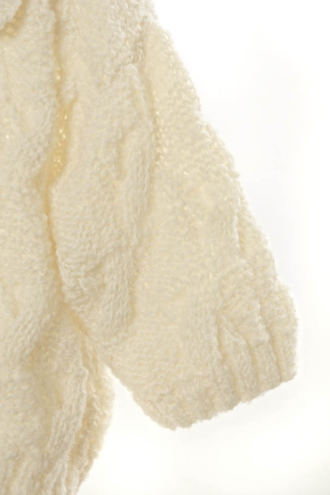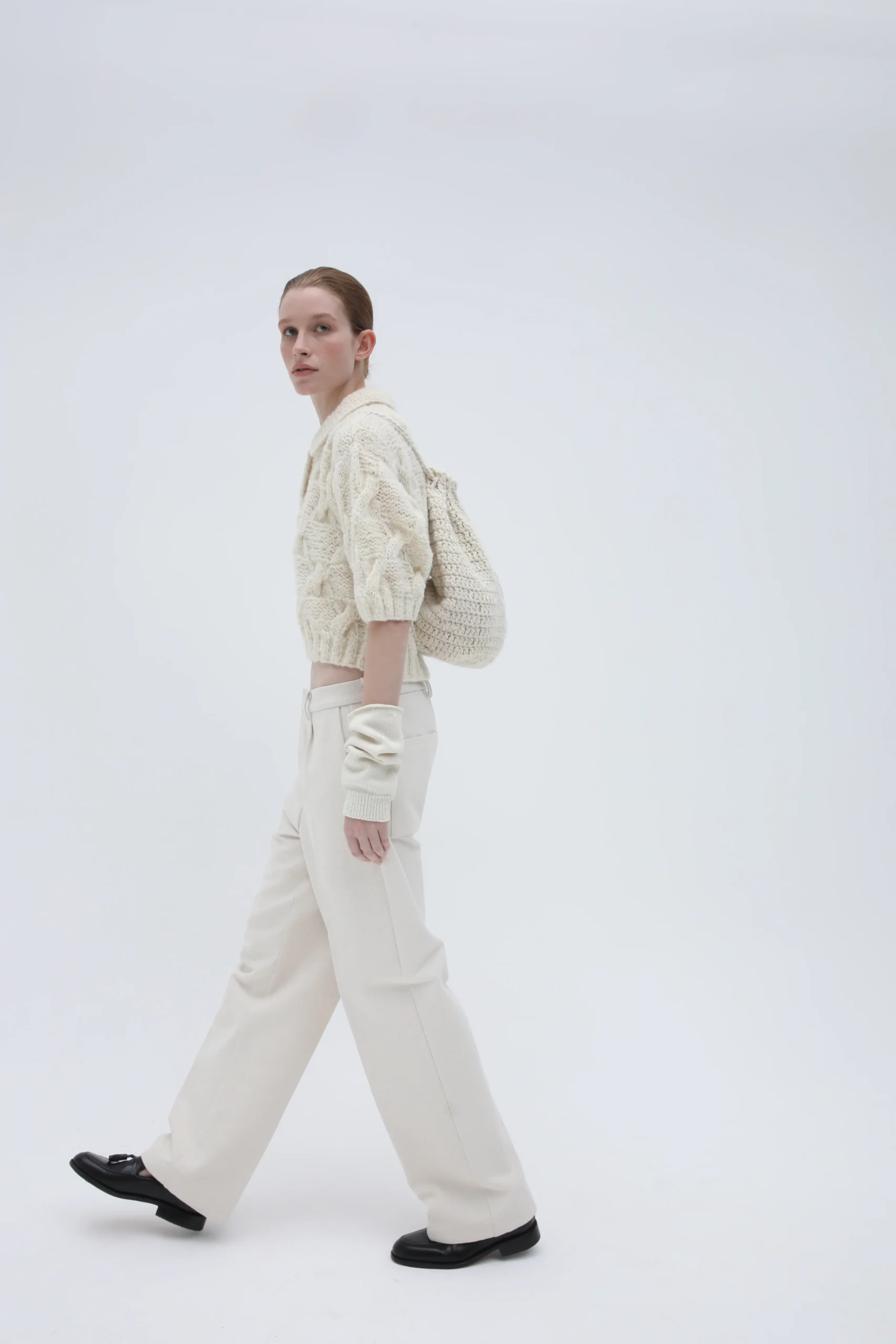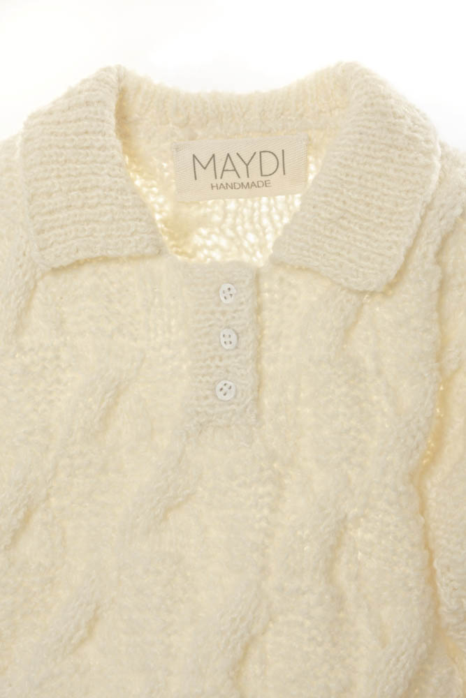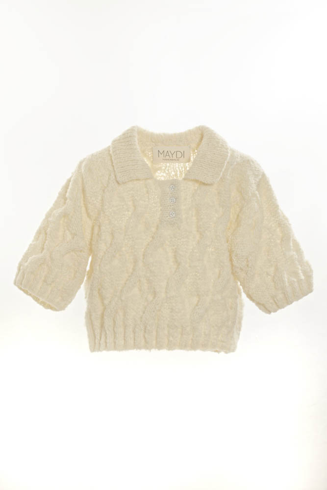 The Piren short sleeves polo sweater cable knit with handmade ceramic buttons closure by mohair and merino wool blend.