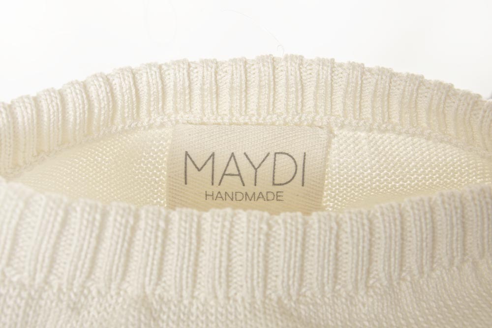 Contáctanos si deseas atención personalizada sales@maydiaz.com [Hecho a Medida – Knitwear Experience]. Tiempo de producción: 1 mes.