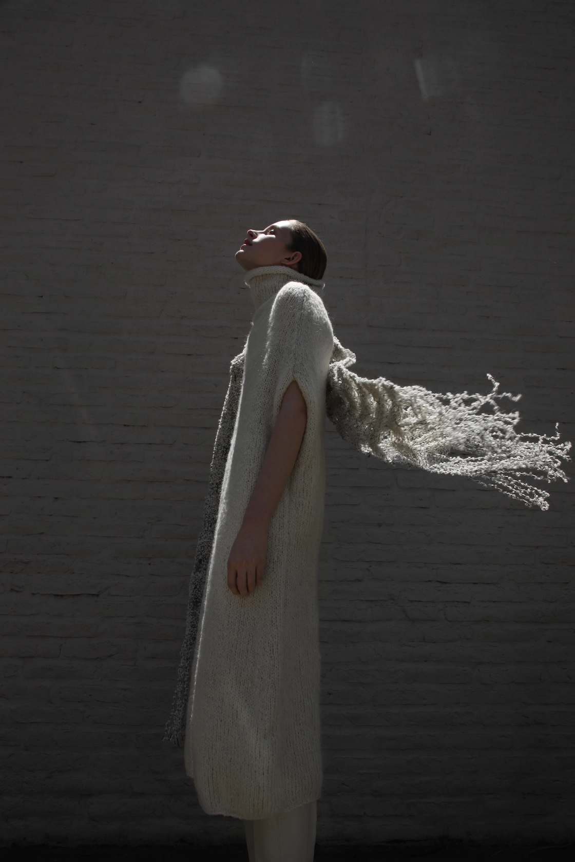 La bufanda Puma está hecha de un tinte natural de llama boucle, la bufanda está construida a partir de cuadrados tejidos utilizando un telar tradicional de cuatro pedales.