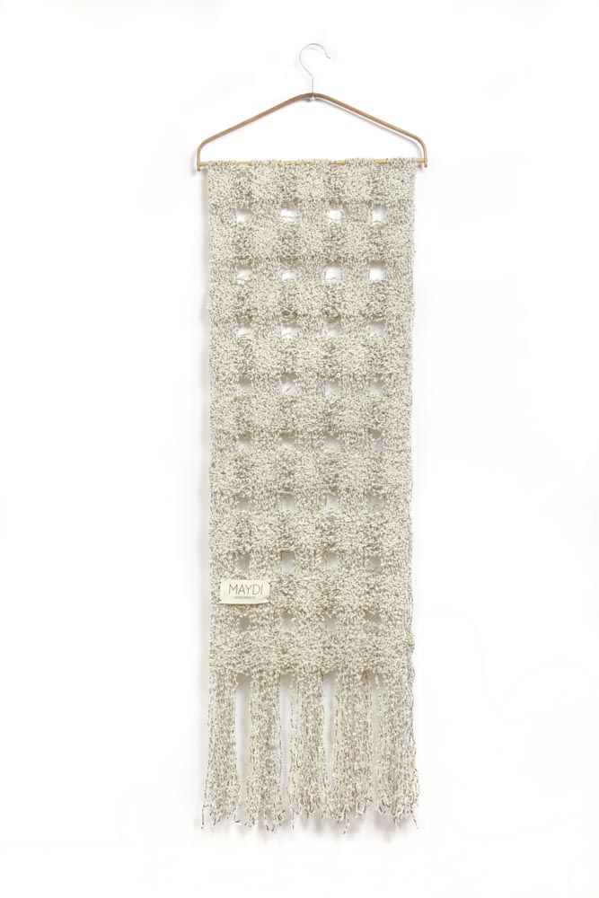 This Puma scarf is made from a boucle llama natural dye, the scarf is constructed from woven squares using a traditional a four-pedal loom.