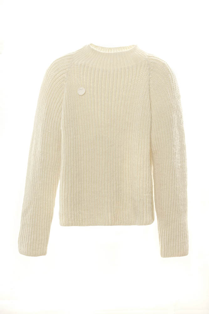 The Quillen ribbed funnel neck sweater in natural white super-soft Merino wool 18 microns from Patagonia.