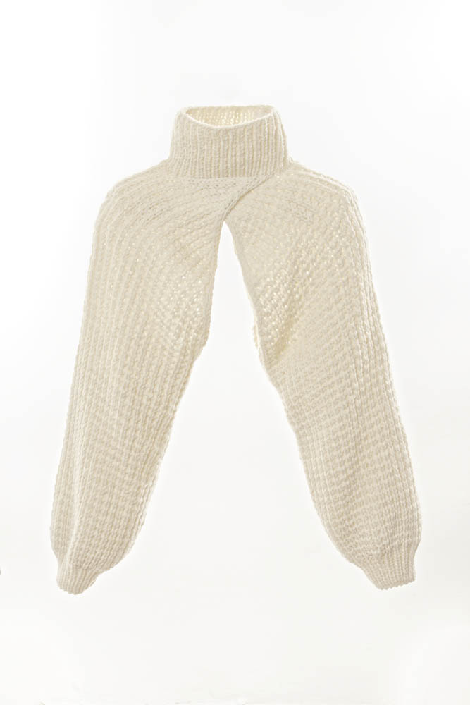 The Ruca bolero shrug high-neck hand-knitted from super-soft Merino wool 18 microns from Patagonia.