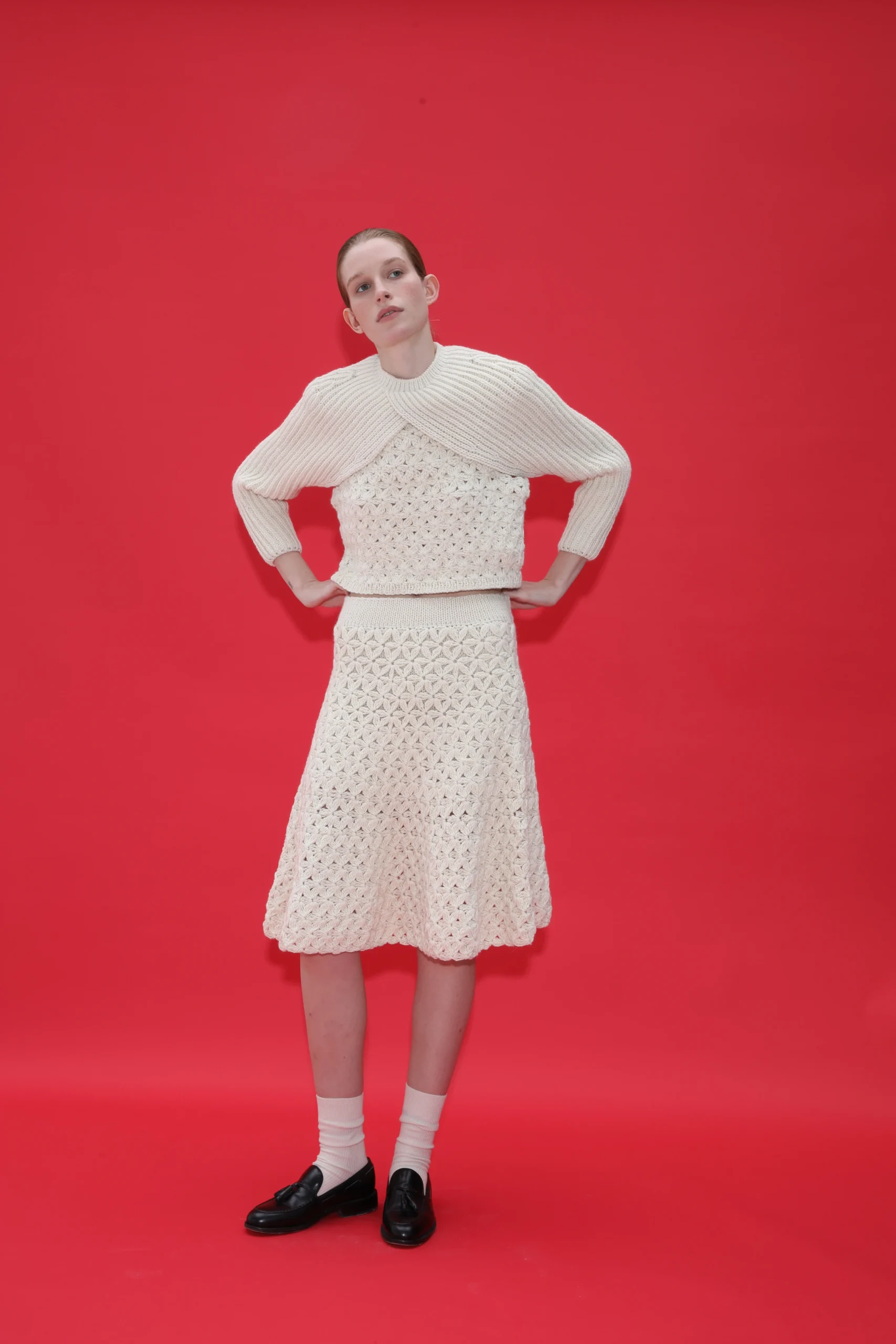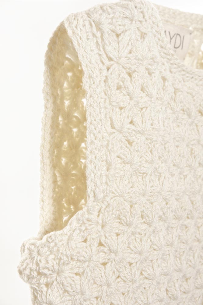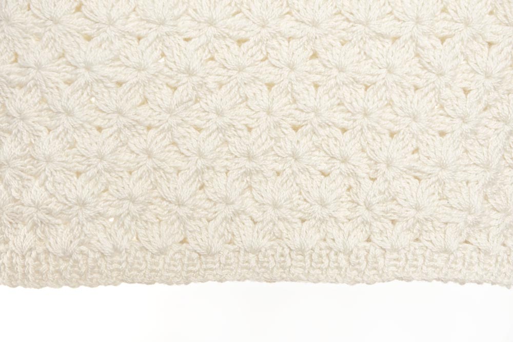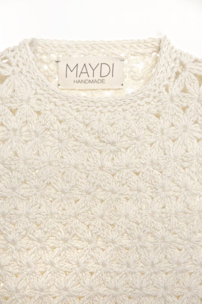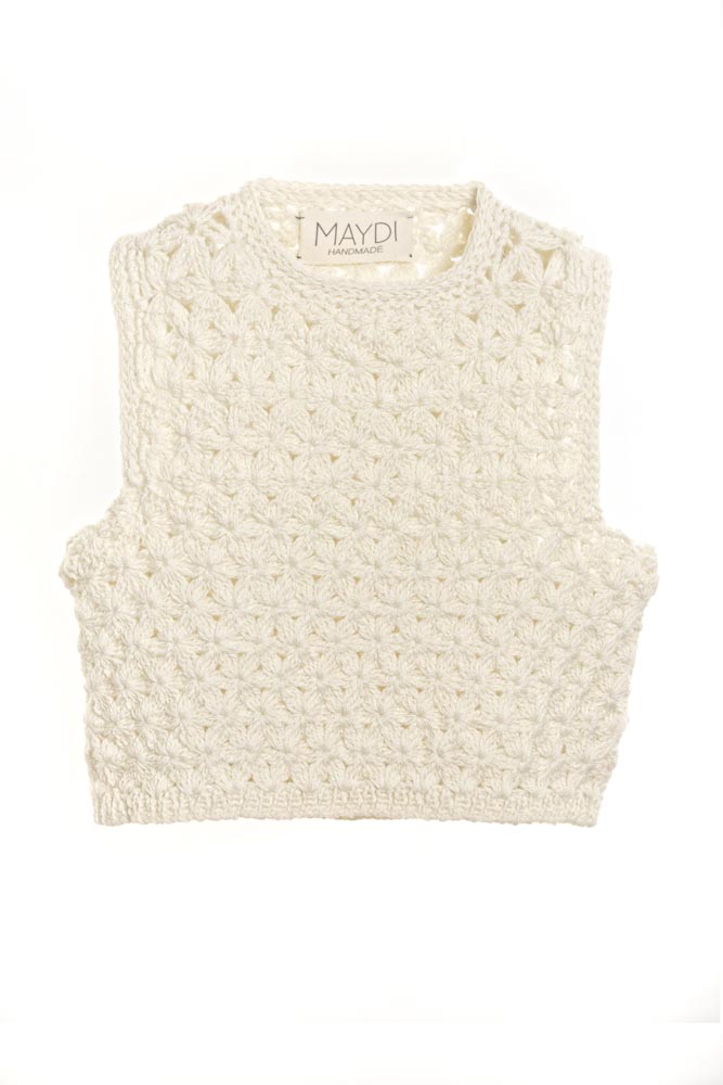This Sanado vest flowers stitch hand-crocheted by mohair wool from a small cooperative from Patagonia.