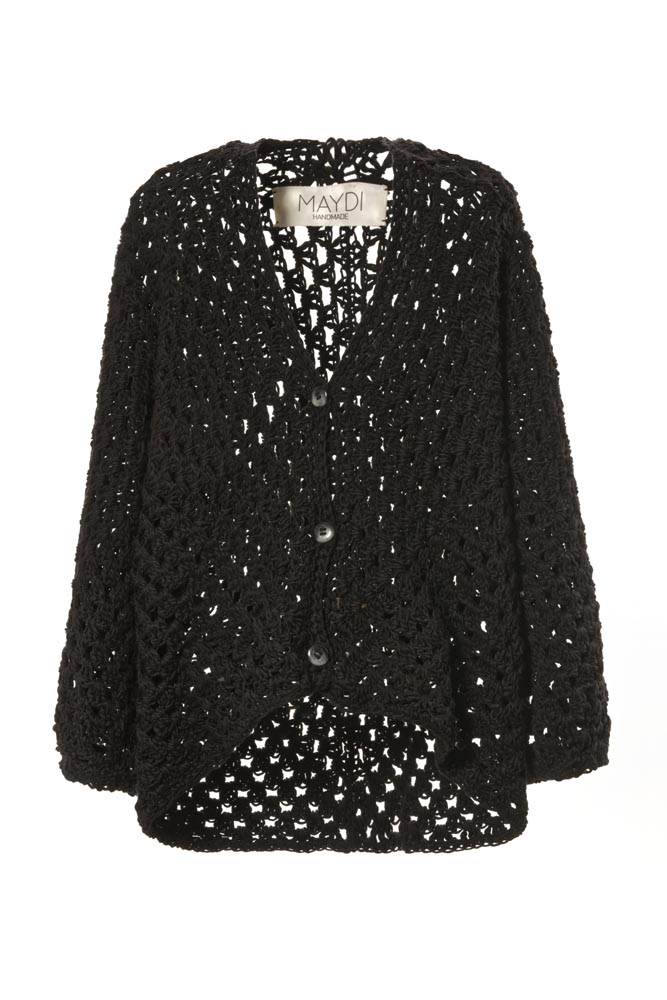 Simple net crochet stitch puffed sleeves Cardigan w/buttons