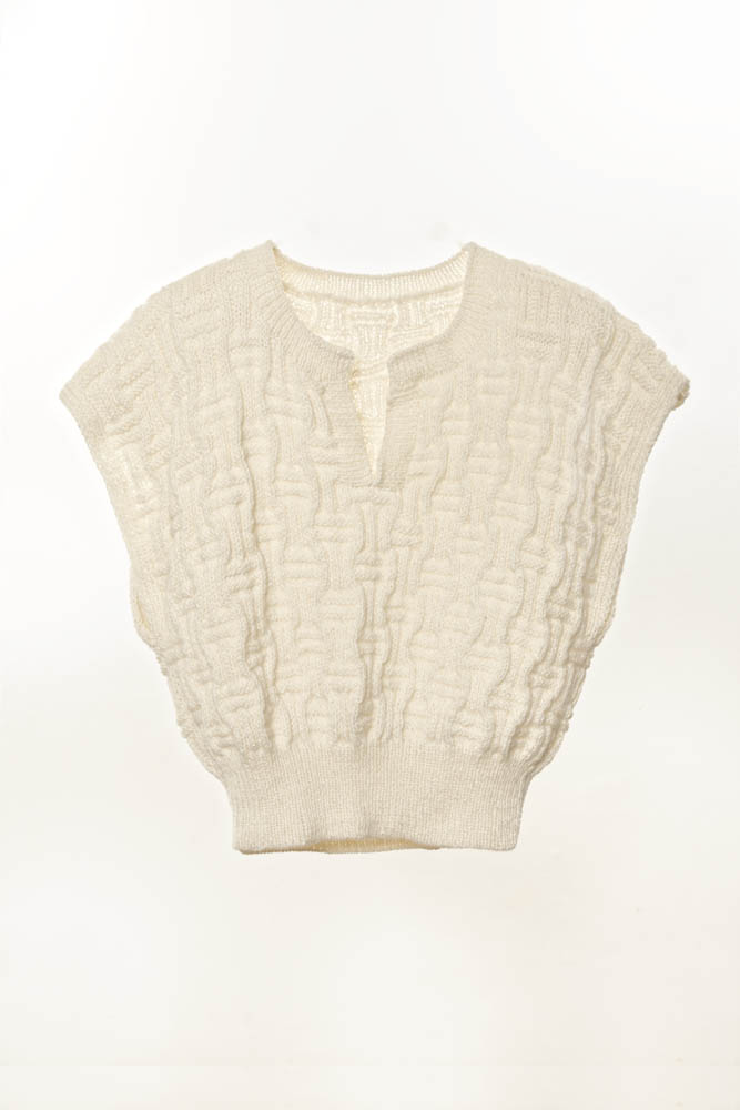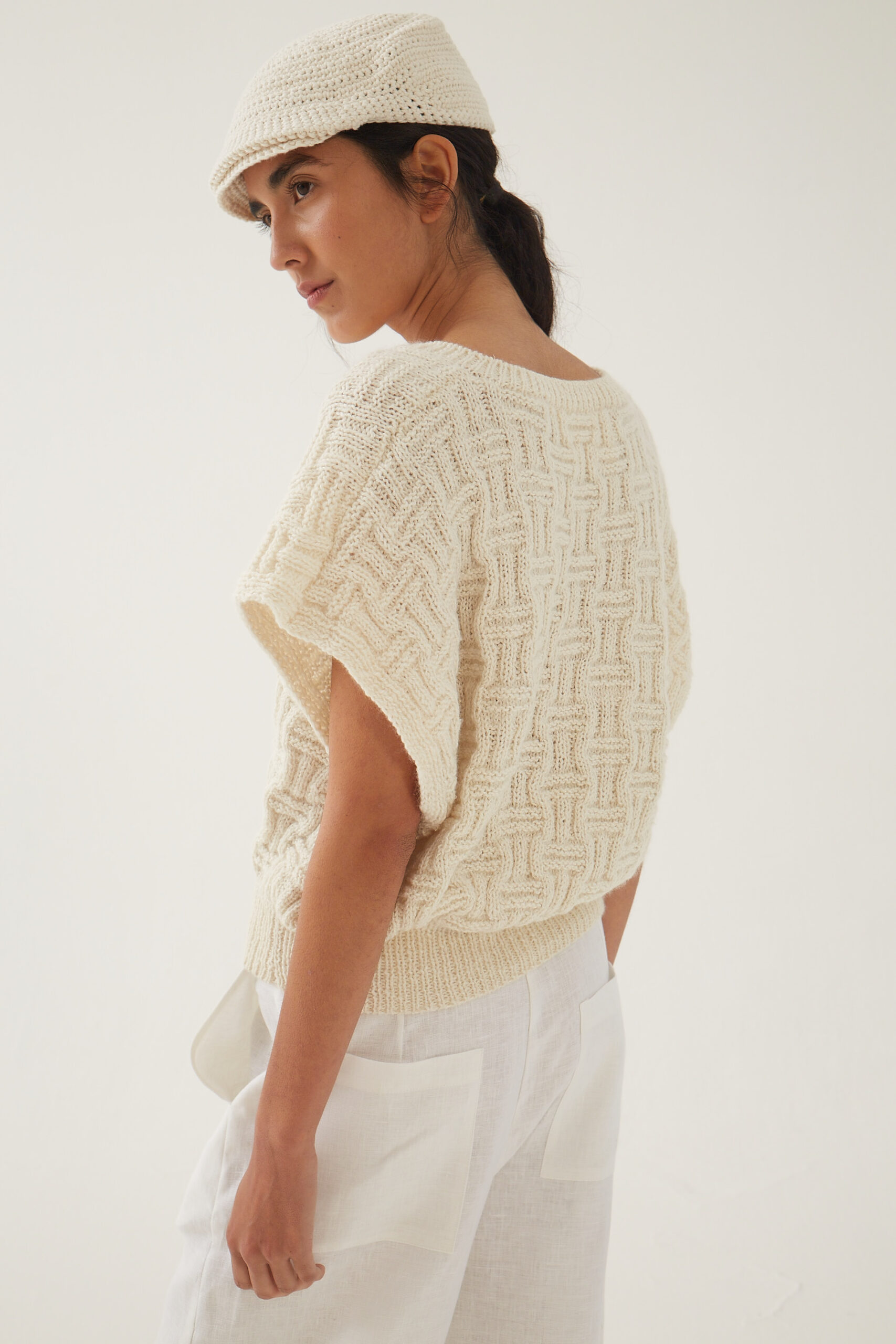 Top de manga corta con dobladillo acanalado tejido a mano, 35% Lana Merino / 35% Cañamo / 30% Bambu