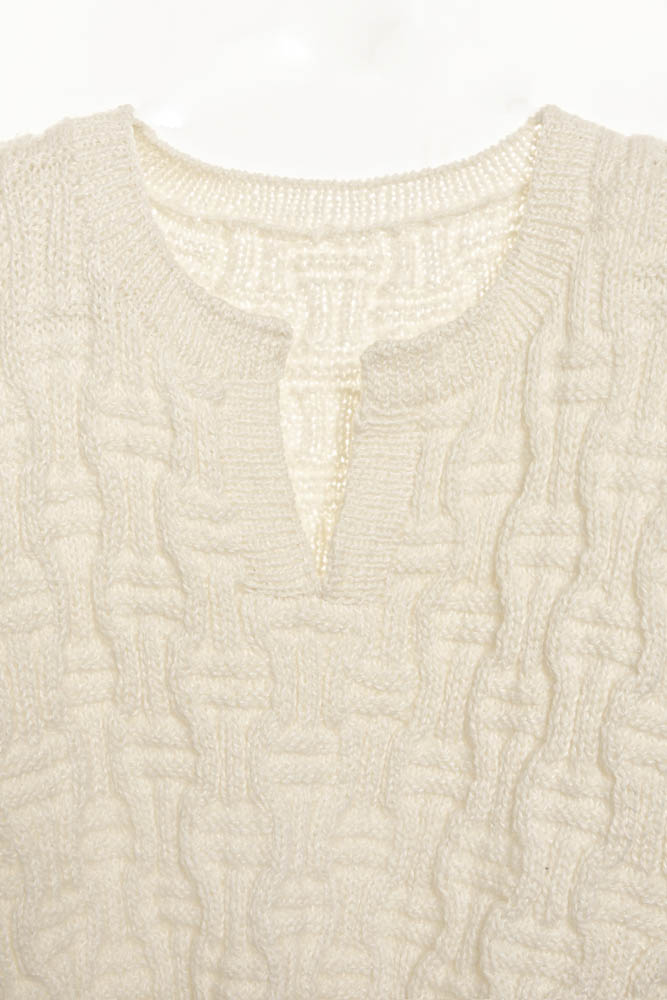 Hand-knitted short sleeves ribbed hem Top, 35% Merino wool / 35% Hemp / 30% Bamboo