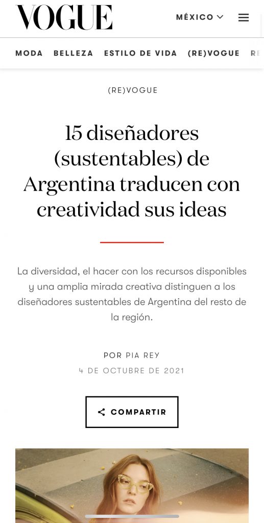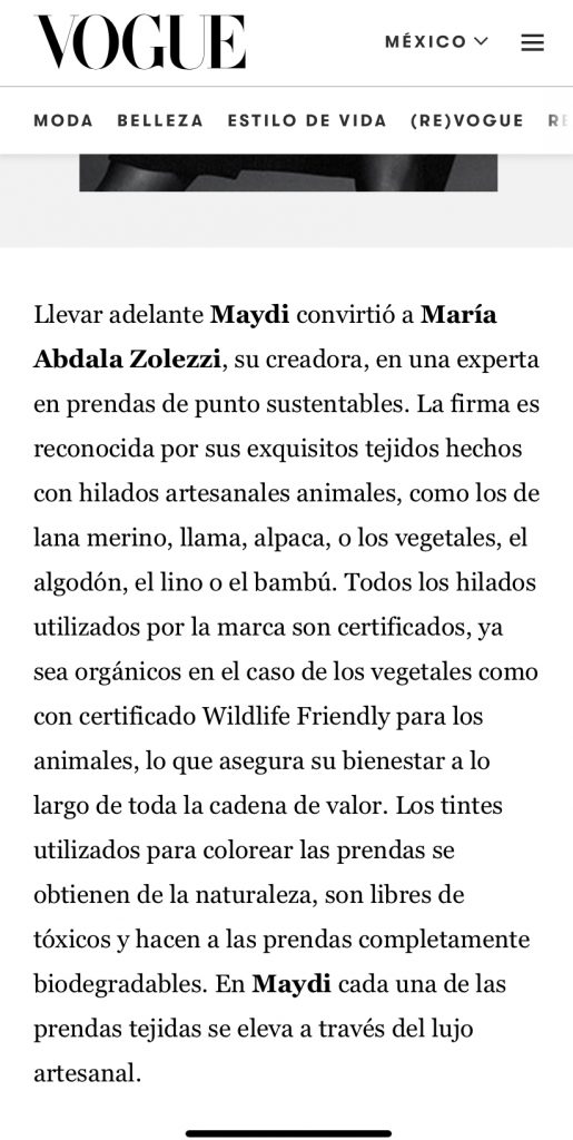 PRESS Vogue & MAYDI [ Ciudad de México 2021 ] October 15, 2021 Posted by Sales Maydi 15 Oct https://www.vogue.mx/sustentabilidad/articulo/disenadores-sustentables-de-argentina-que-reafirman-la-vision-etica-de-la-moda